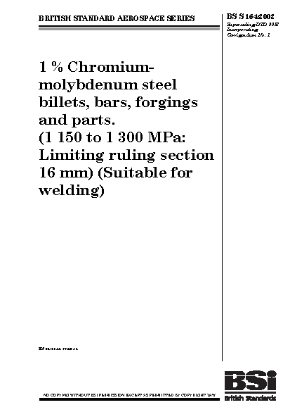 1 % Chromium-molybdenum steel billets, bars, forgings and parts. (1150 to 1300 MPa: Limiting ruling section 16 mm) (Suitable for welding)