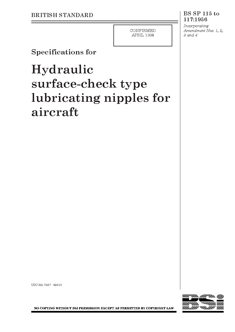 Specifications for hydraulic surface-check type lubricating nipples for aircraft