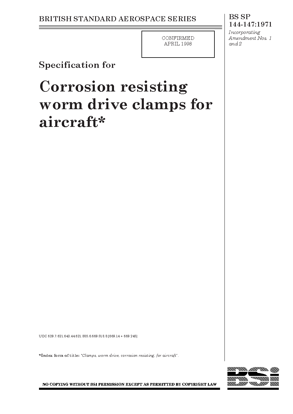 Stainless steels;Nickel alloys;Hose clips;Steels;Hydraulic tests;Design;Pipe connections;Performance testing;Sampling methods;Marking;Size;Hose connectors;Dimensions;Aircraft components;Designations;Corrosion-resistant materials;Test equipment;Torque;Pressure testing