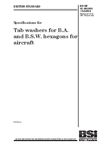 Specifications for tab washers for B.A. and B.S.W. hexagons for aircraft