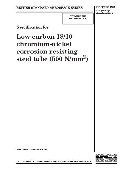 Specification for low carbon 18/10 chromium-nickel corrosion-resisting steel tube (500 N/mm2)