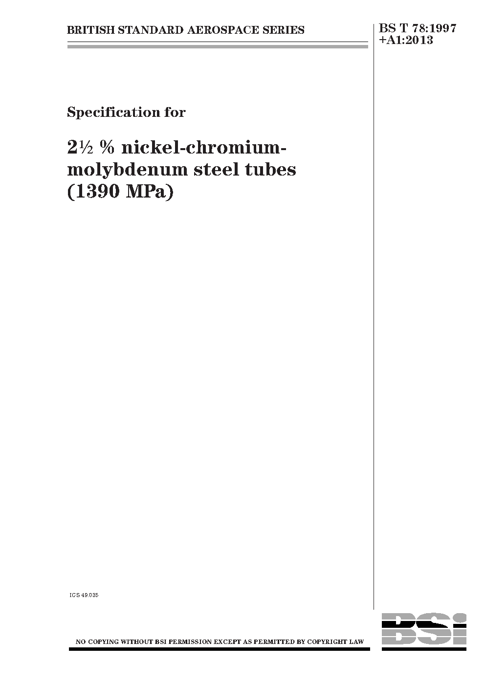 Specification for 2½ % nickel-chromium-molybdenum steel tubes (1390Mpa)