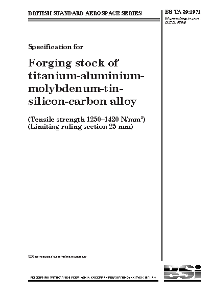 Specification for forging stock of titanium-aluminium-molybdenum-tin-silicon-carbon alloy (tensile strength 1250-1420 N/mm2) (limiting ruling section 25 mm)