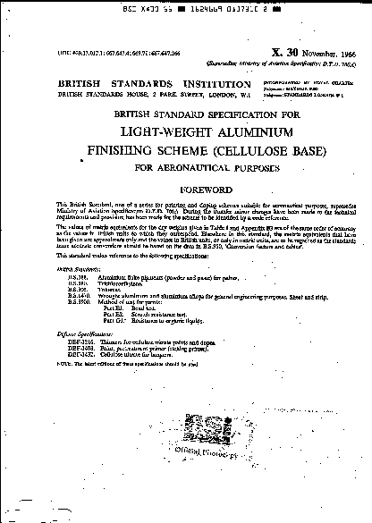 Specification for light-weight aluminium finishing scheme (cellulose base) for aeronautical purposes