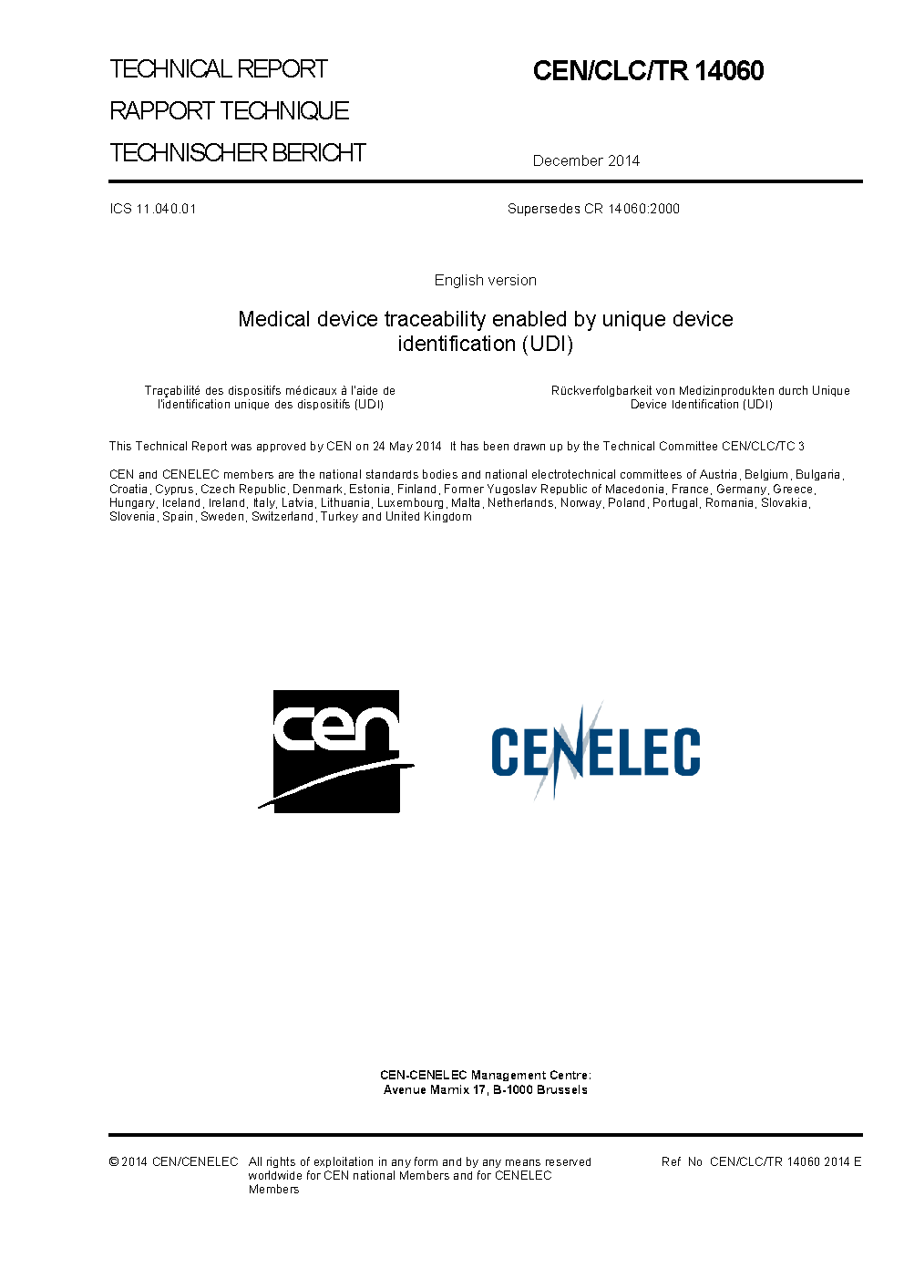 This Technical Report describes the current situation for medical device traceability in Europe and identifies key elements to establish a comprehensive European traceability system that would provide full traceability to the individual patient level.