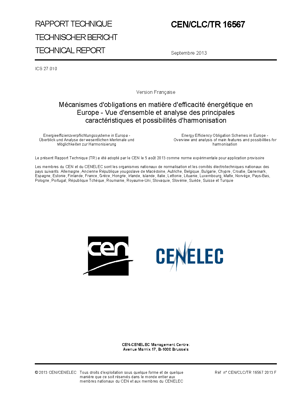 This Technical Report also analyses the need and/or possibility to harmonise a system in Europe (i.e. to write a standard). It also includes an analysis of some countries’ hesitation to introduce white certificate systems.