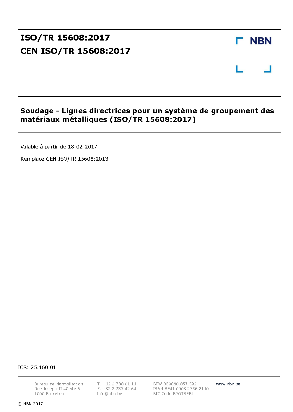 CEN ISO/TR 15608:2017