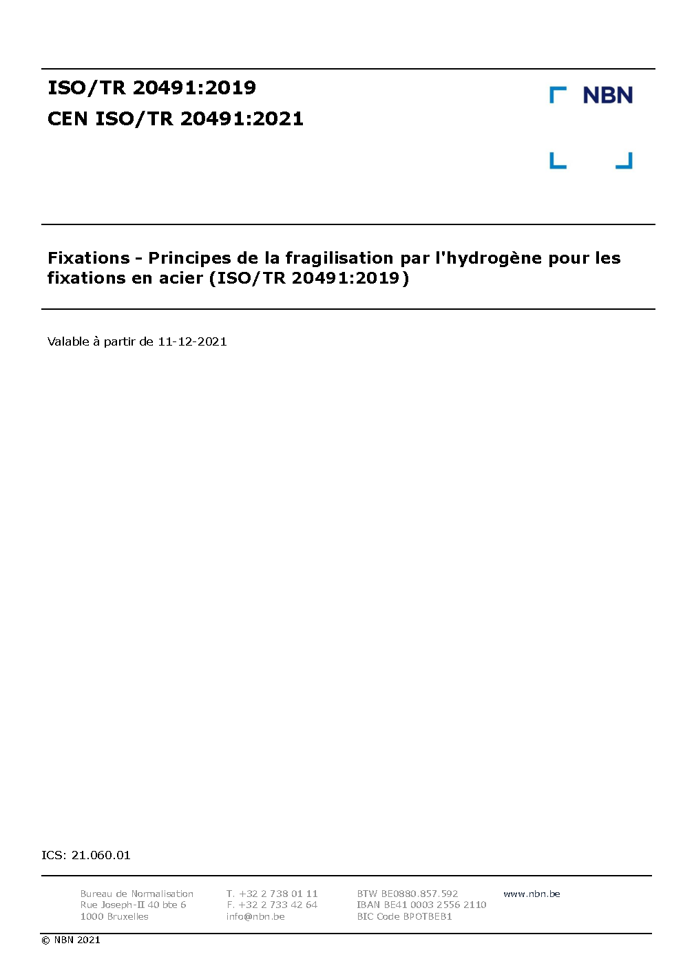 Fasteners - Fundamentals of hydrogen embrittlement in steel fasteners (ISO/TR 20491:2019)