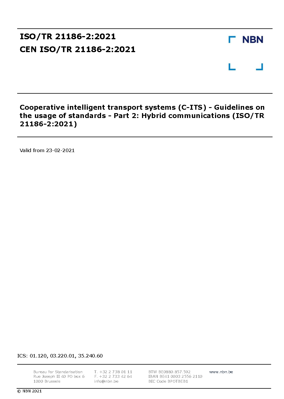 Cooperative intelligent transport systems (C-ITS) - Guidelines on the usage of standards - Part 2: Hybrid communications (ISO/TR 21186-2:2021)