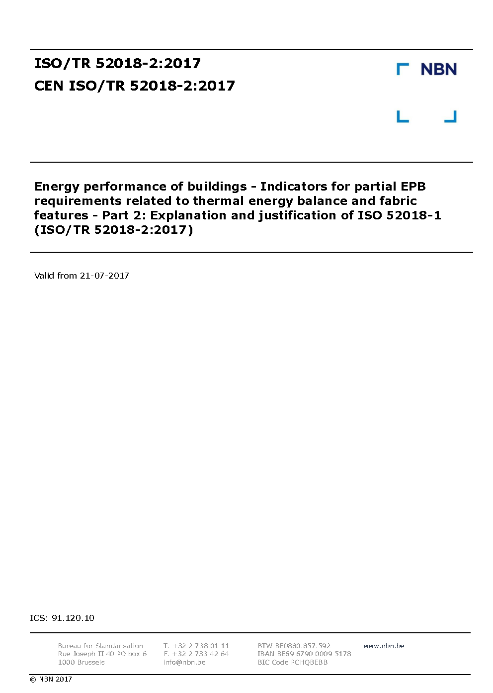 Energy performance of buildings - Indicators for partial EPB requirements related to thermal energy balance and fabric features - Part 2: Explanation and justification of ISO 52018-1 (ISO/TR 52018-2:2017)