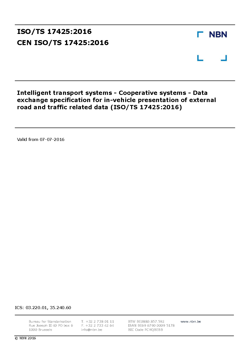 | Publisher | Bureau de Normalisation Belge (NBN) |