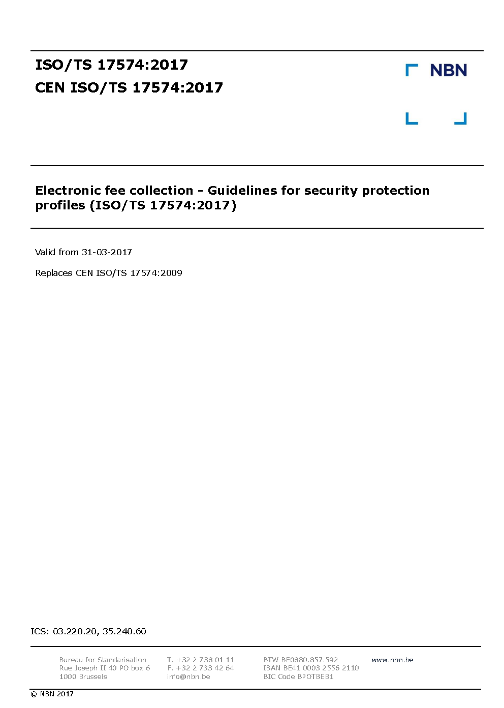 Electronic fee collection - Guidelines for security protection profiles (ISO/TS 17574:2017)