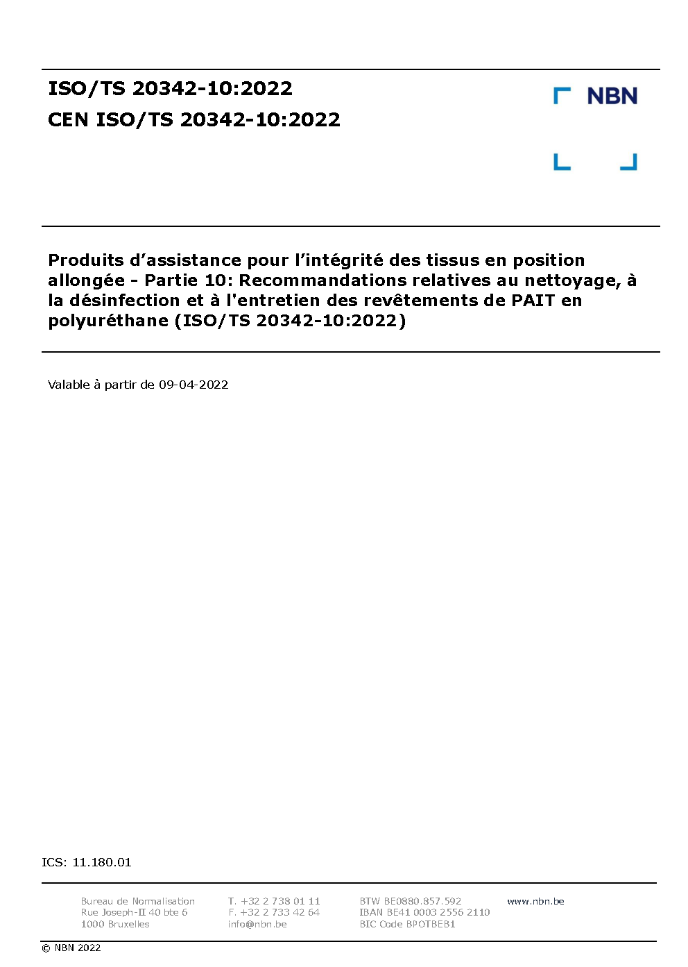 Assistive products for tissue integrity when lying down - Part 10: Guidance to cleaning, disinfecting and care of polyurethane APTI covers (ISO/TS 20342-10:2022)