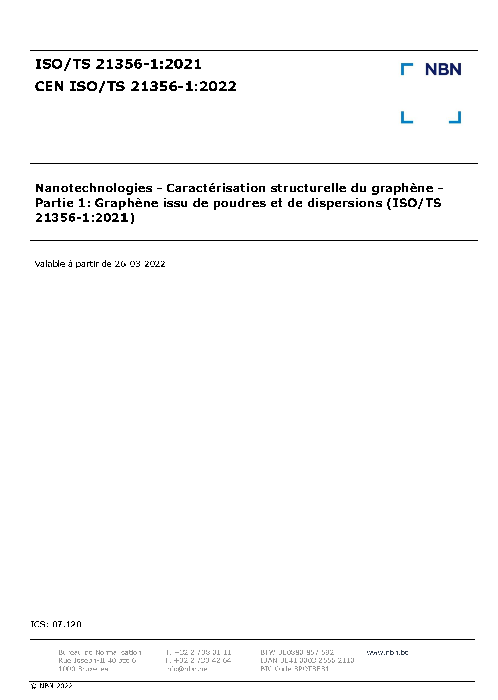 Nanotechnologies - Structural characterization of graphene - Part 1: Graphene from powders and dispersions (ISO/TS 21356-1:2021)