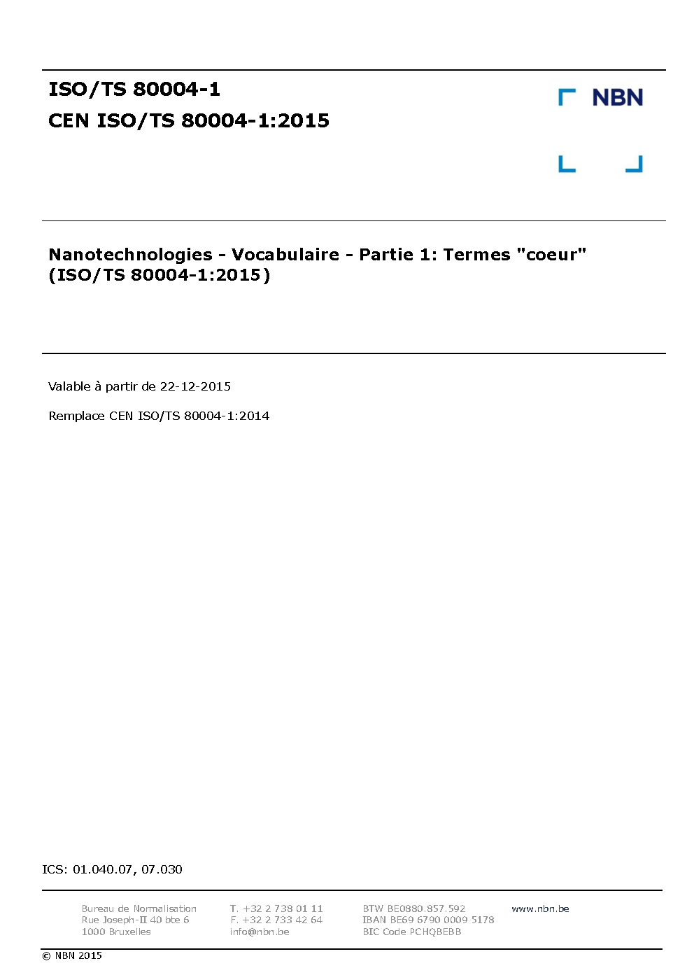 | Publisher | Bureau de Normalisation Belge (NBN) |