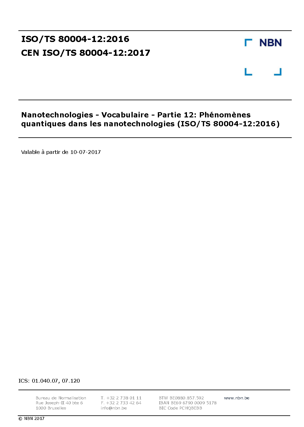 Nanotechnologies - Vocabulary - Part 12: Quantum phenomena in nanotechnology (ISO/TS 80004-12:2016)