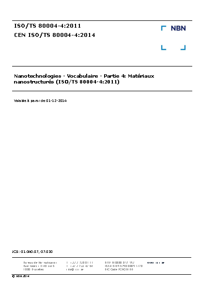 Nanotechnologies - Vocabulary - Part 4: Nanostructured materials (ISO/TS 80004-4:2011)