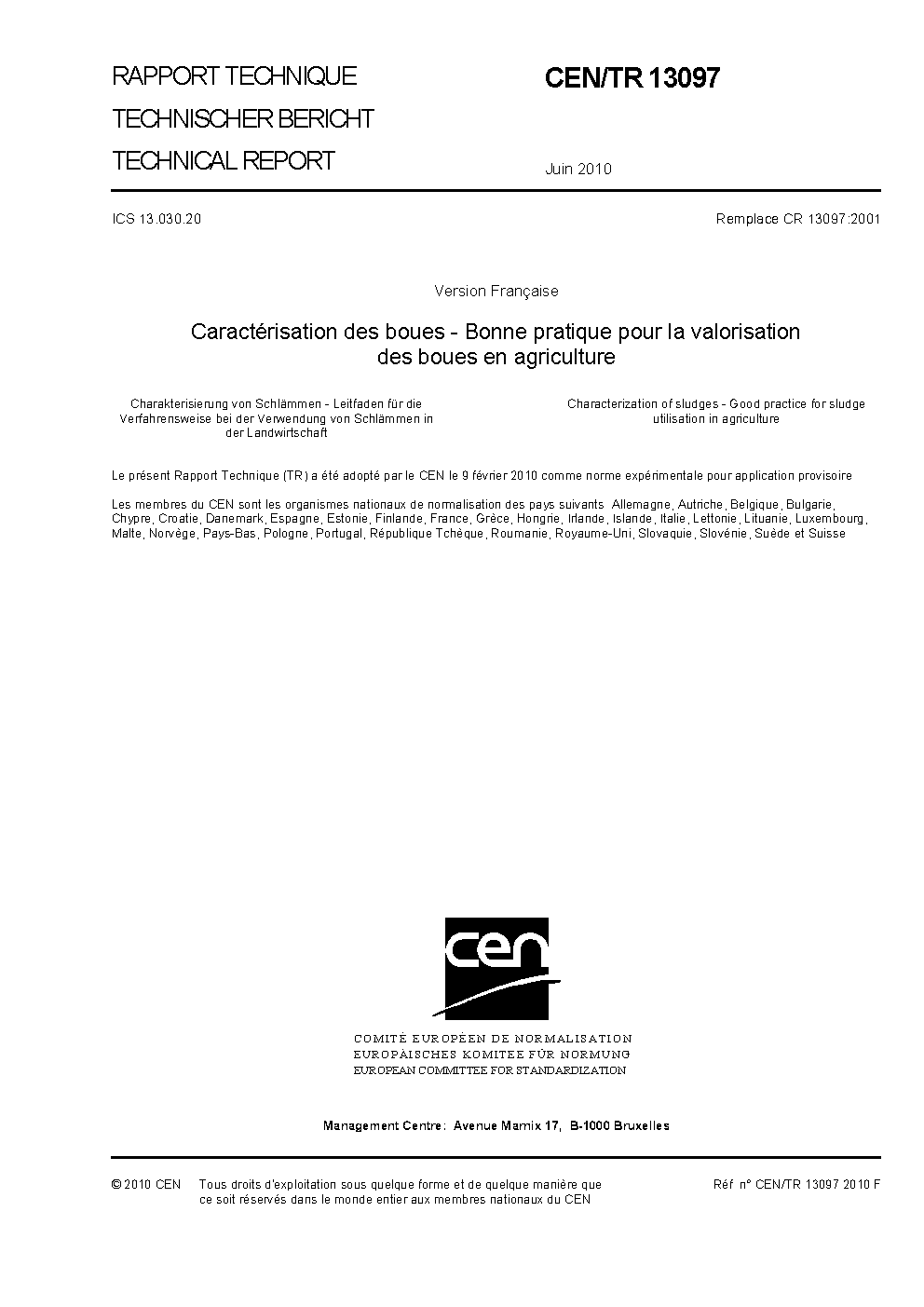 CEN/TR 13097:2010