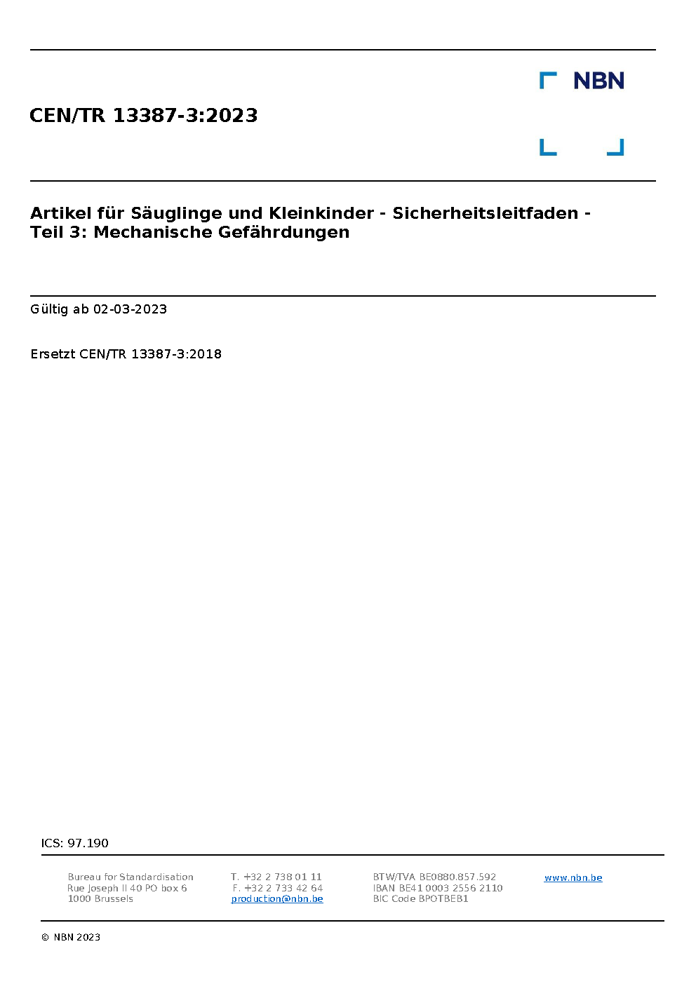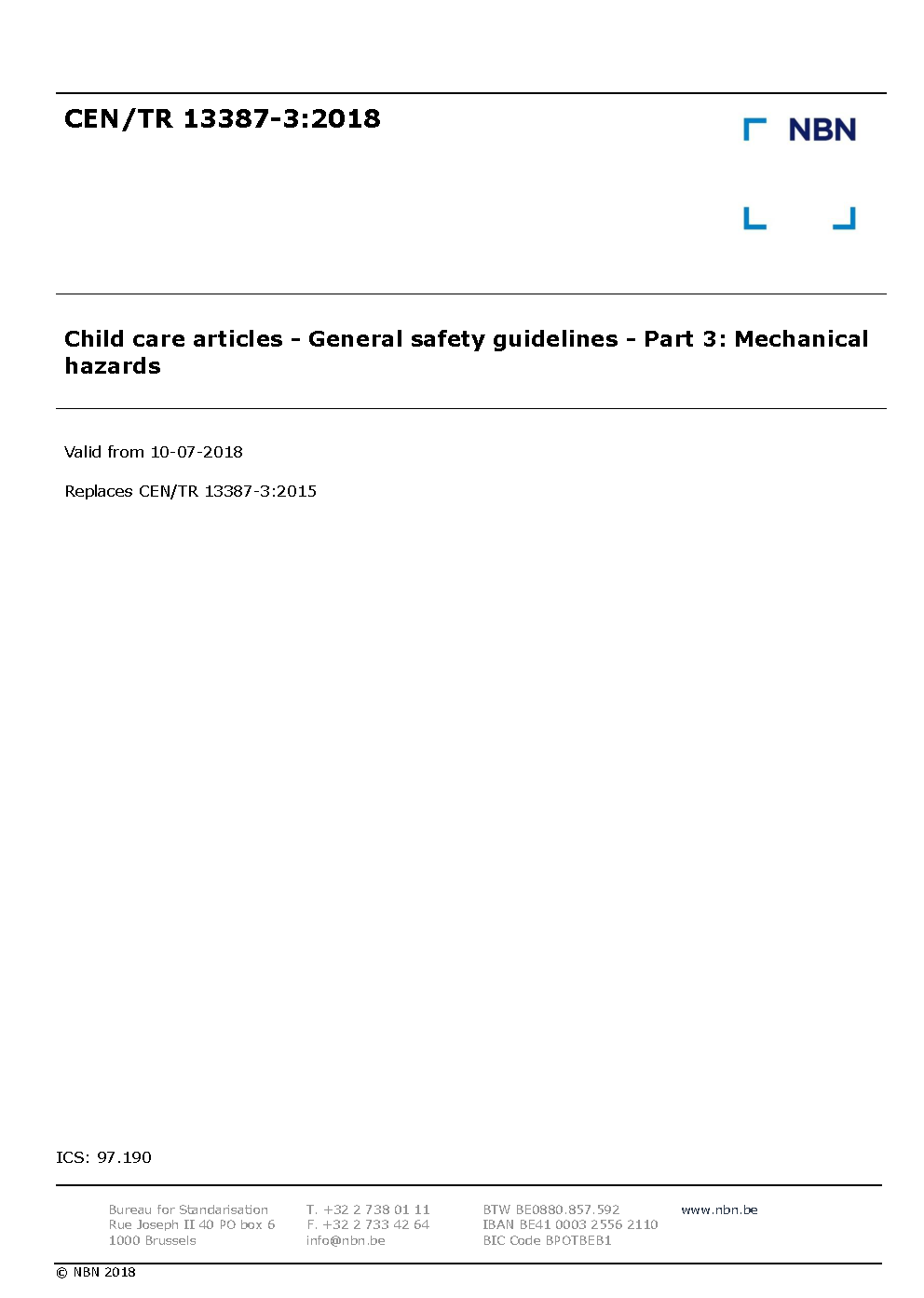 This Technical Report addresses the most known mechanical hazards and is intended to provide guidance when drafting standards for child use and care articles.