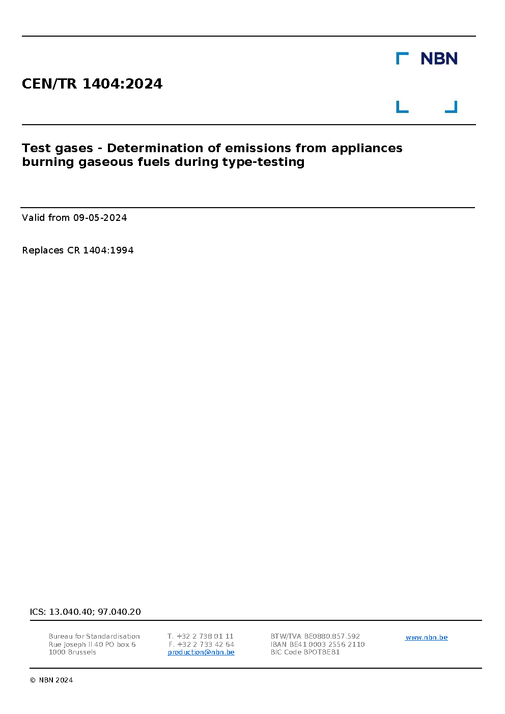 | Publisher | Bureau de Normalisation Belge (NBN) |