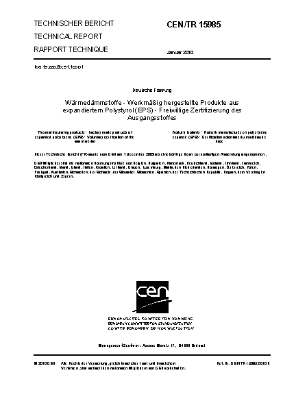 Thermal insulating products - Factory made products of expanded polystyrene (EPS) - Voluntary certification of the raw material