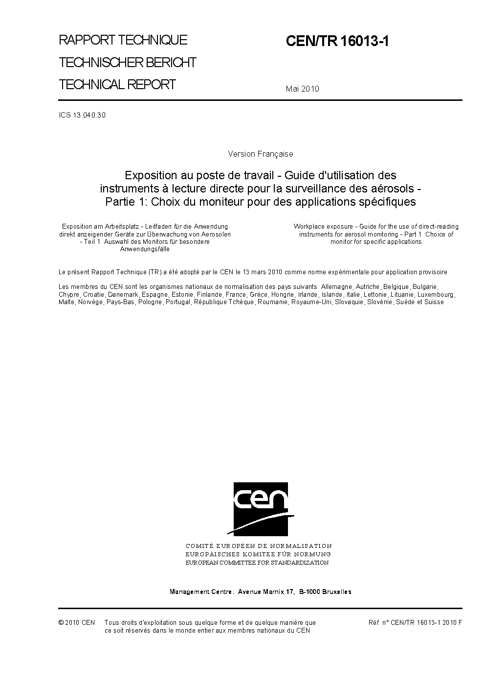CEN/TR 16013-1:2010