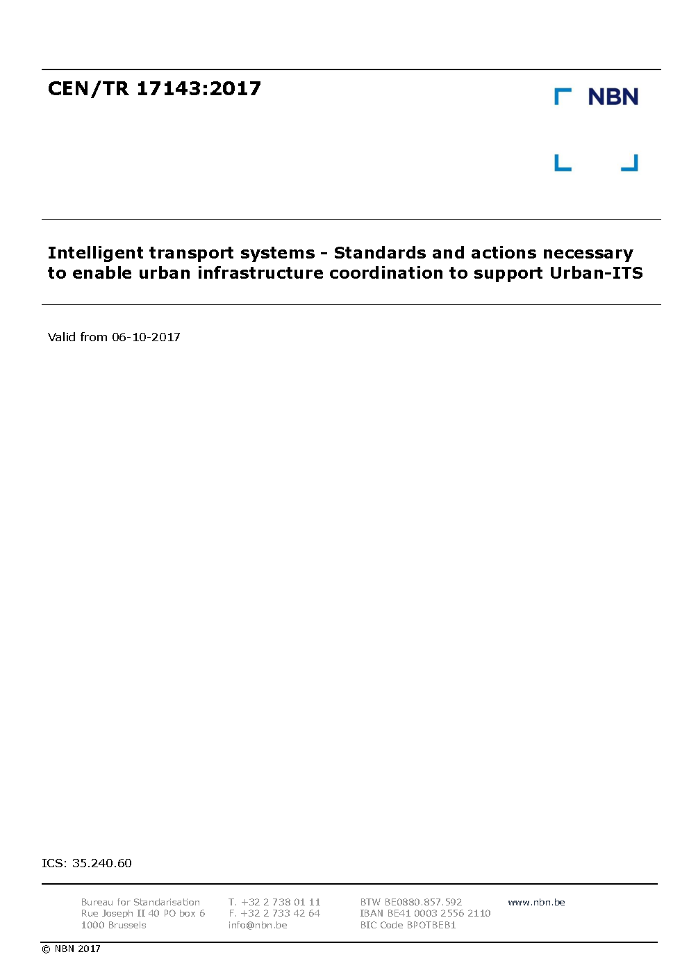 Intelligent transport systems - Standards and actions necessary to enable urban infrastructure coordination to support Urban-ITS