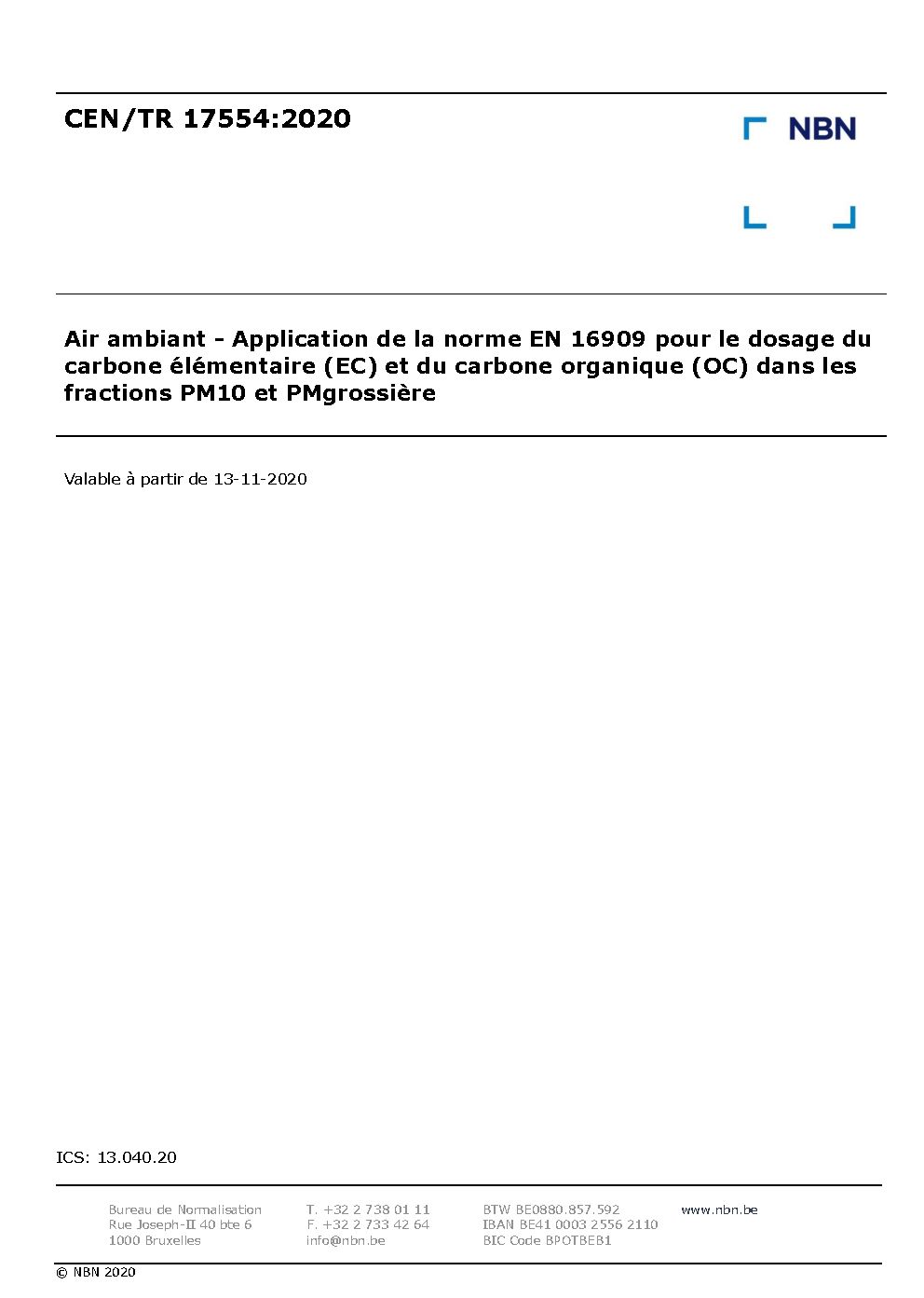 Ambient air - Application of EN 16909 for the determination of elemental carbon (EC) and organic carbon (OC) in PM10 and PMcoarse