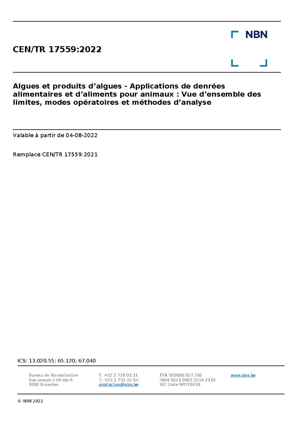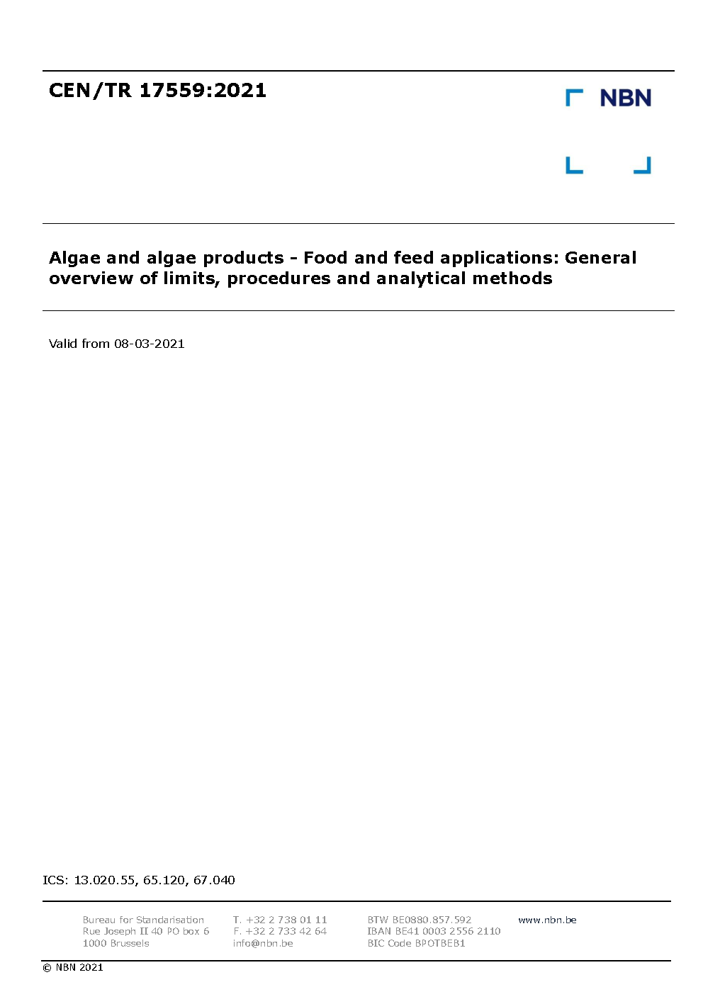 Algae and algae products - Food and feed applications: General overview of limits, procedures and analytical methods