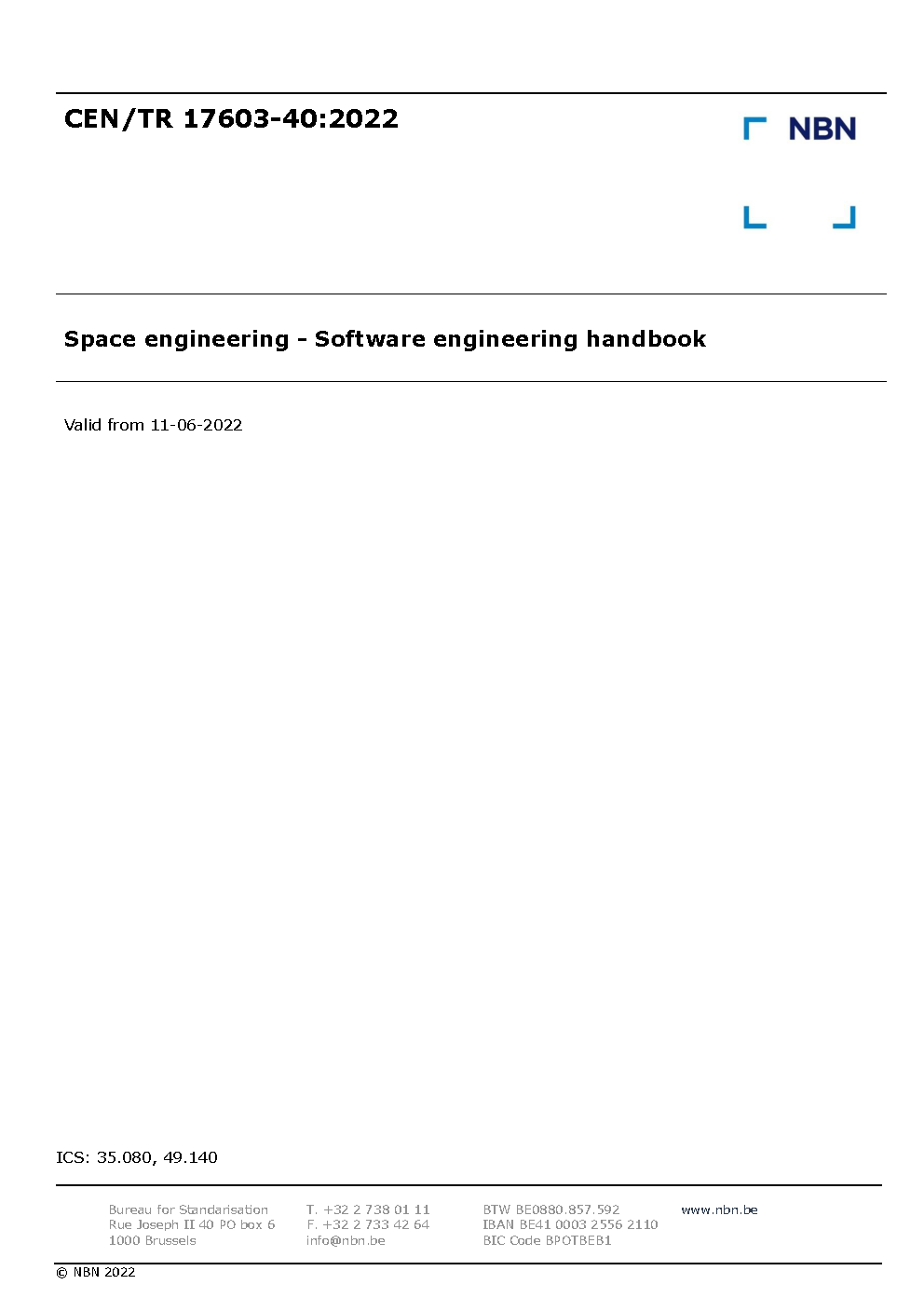 This Handbook provides advice, interpretations, elaborations and software engineering best practices for the implementation of the requirements specified in EN 16603-40 (based on ECSS-E-ST-40C). The handbook is intended to be applicable to both flight and ground. It has been produced to complement the EN 16603-40 Standard, in the area where space project experience has reported issues related to the applicability, the interpretation or the feasibility of the Standard. It should be read to clarify the spirit of the Standard, the intention of the authors or the industrial best practices when applying the Standard to a space project.