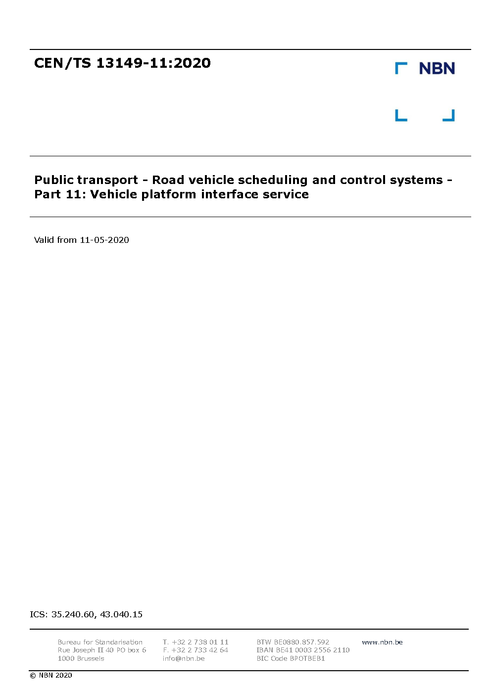 | Publisher | Bureau de Normalisation Belge (NBN) |