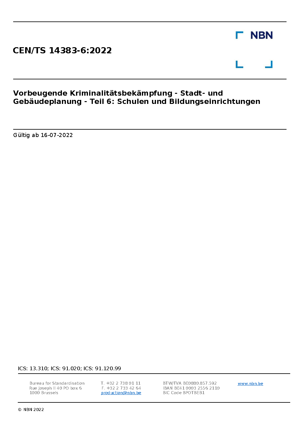 | Publisher | Bureau de Normalisation Belge (NBN) |