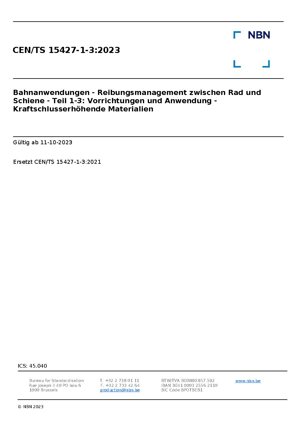 | Publisher | Bureau de Normalisation Belge (NBN) |