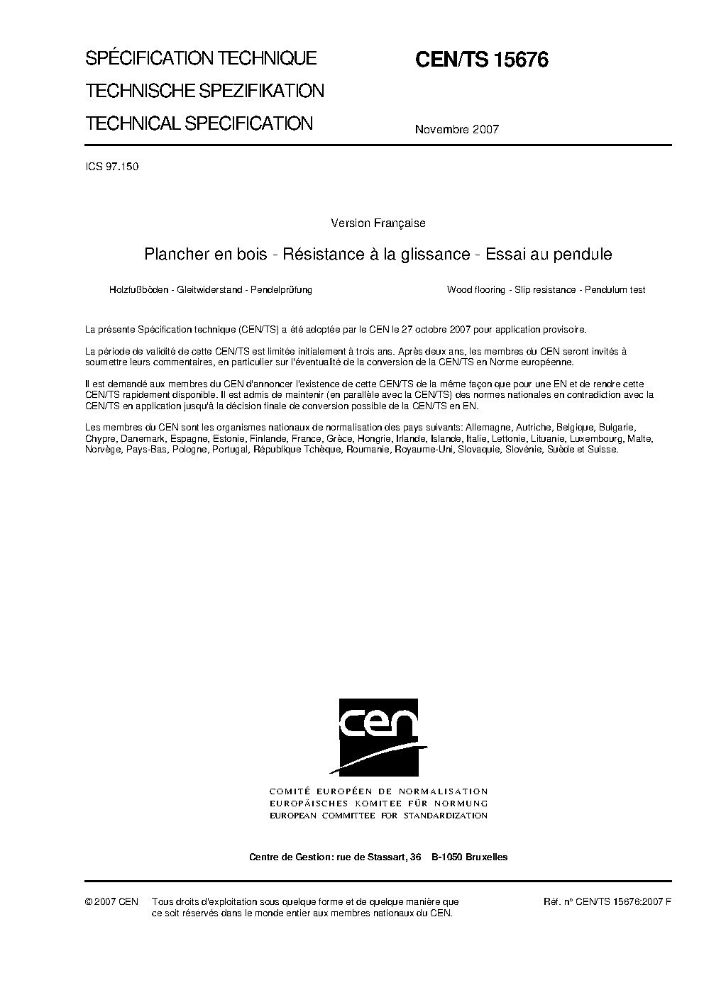 This Technical Specification specifies the method of applying the pendulum test to wood flooring, in order to determine the slip resistance.
