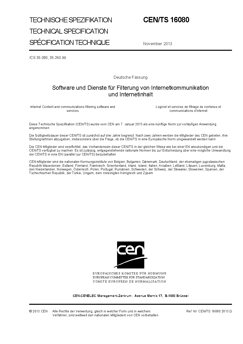 CEN/TS 16080:2013