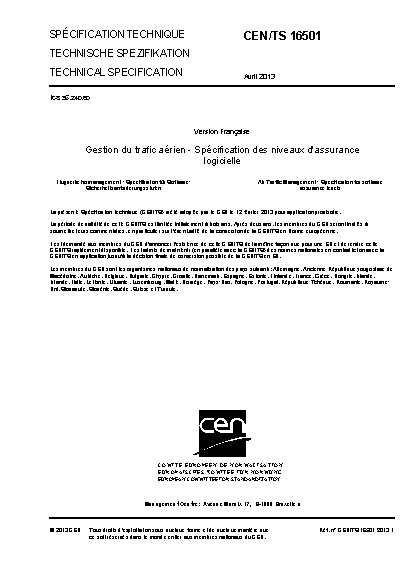 This Technical Specification specifies the technical, operational and maintenance requirements for Software Assurance Levels to support the demonstration of compliance with some elements of the Essential Requirements Safety and Principles governing the construction of systems of the Regulation (EC 552/2004) of the European Parliament and of the Council on the interoperability of the European Air Traffic network (the Interoperability regulation).