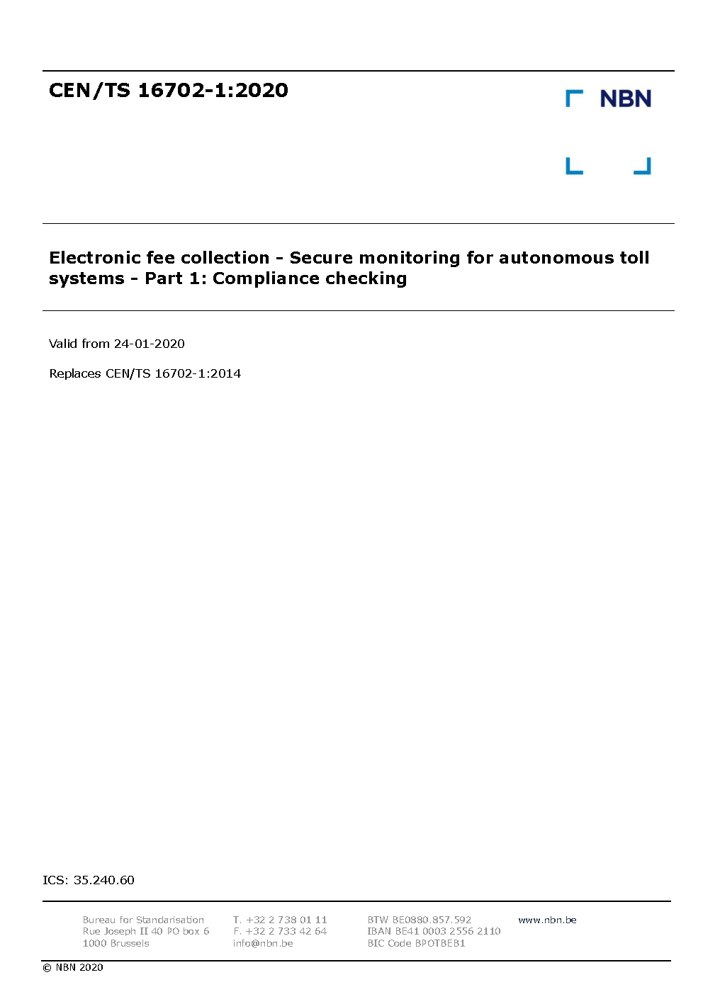 - the use of the OBE compliance checking transaction as specified in EN ISO 12813, for the purpose of Compliance Checking - Secure Monitoring;