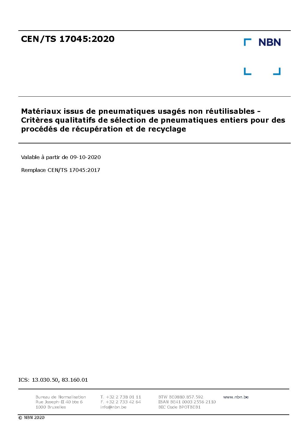 | Publisher | Bureau de Normalisation Belge (NBN) |