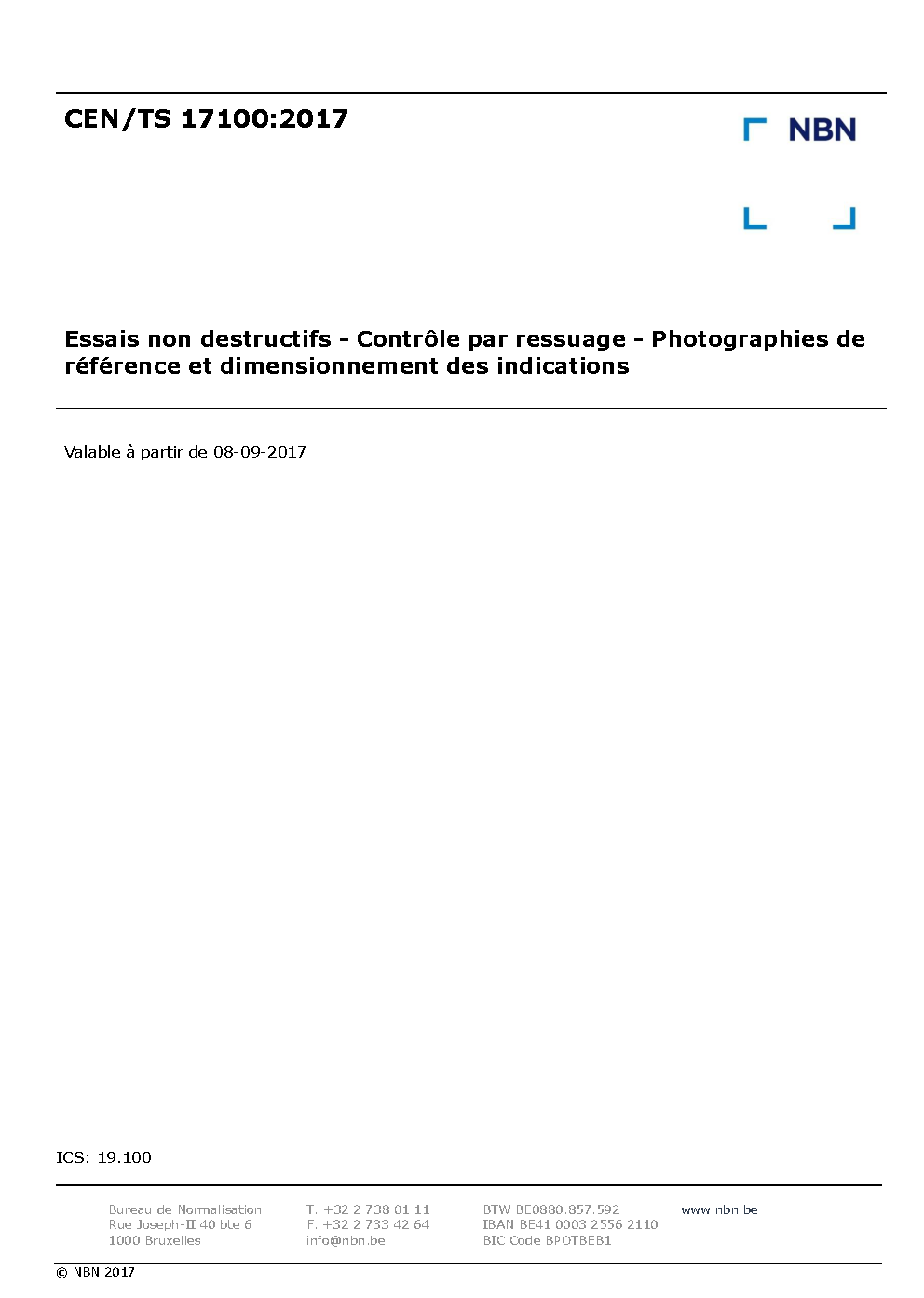 | Publisher | Bureau de Normalisation Belge (NBN) |