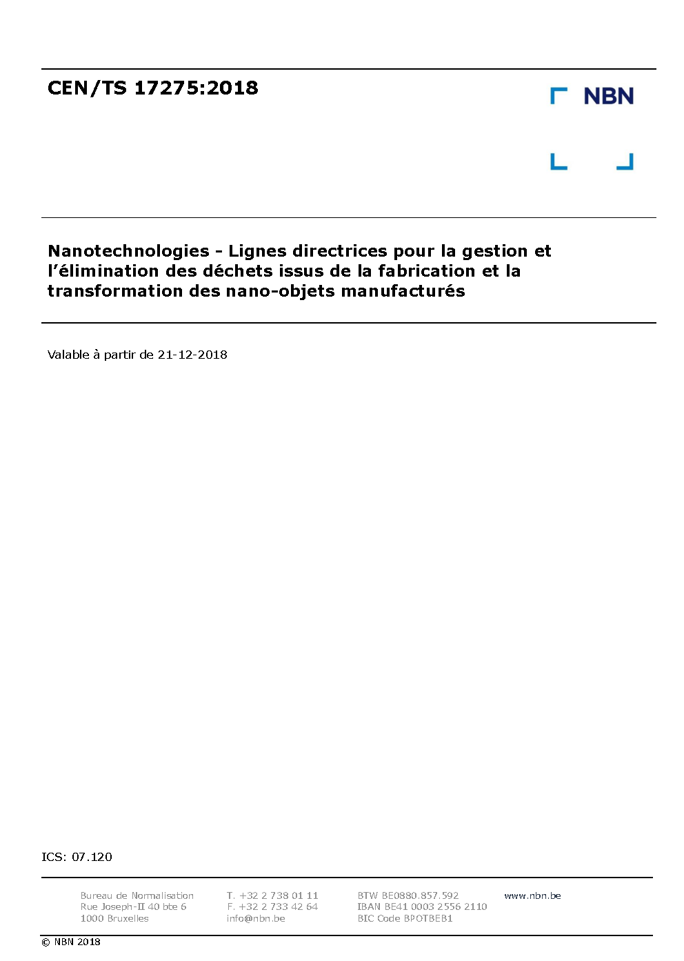 | Publisher | Bureau de Normalisation Belge (NBN) |