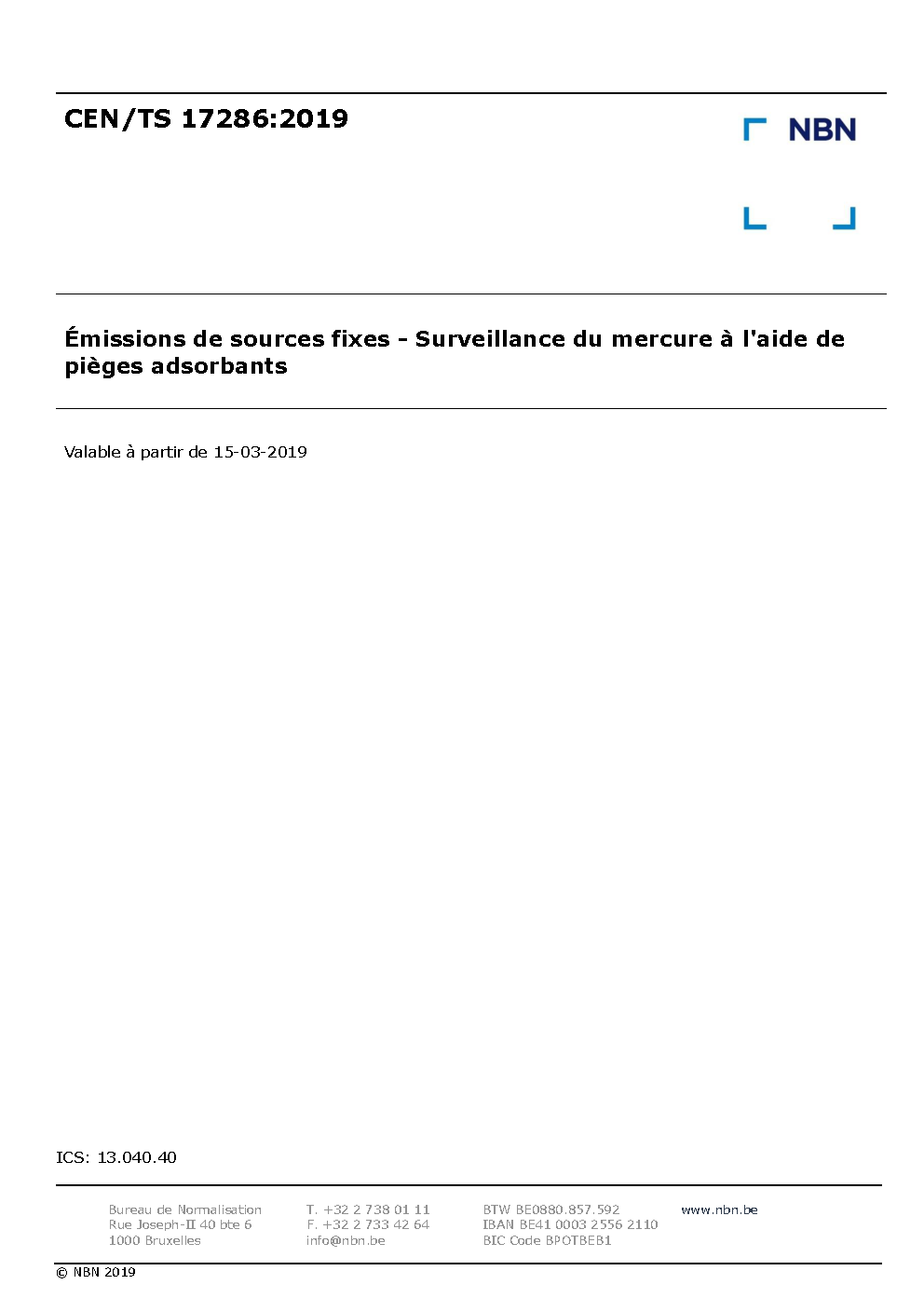 | Publisher | Bureau de Normalisation Belge (NBN) |