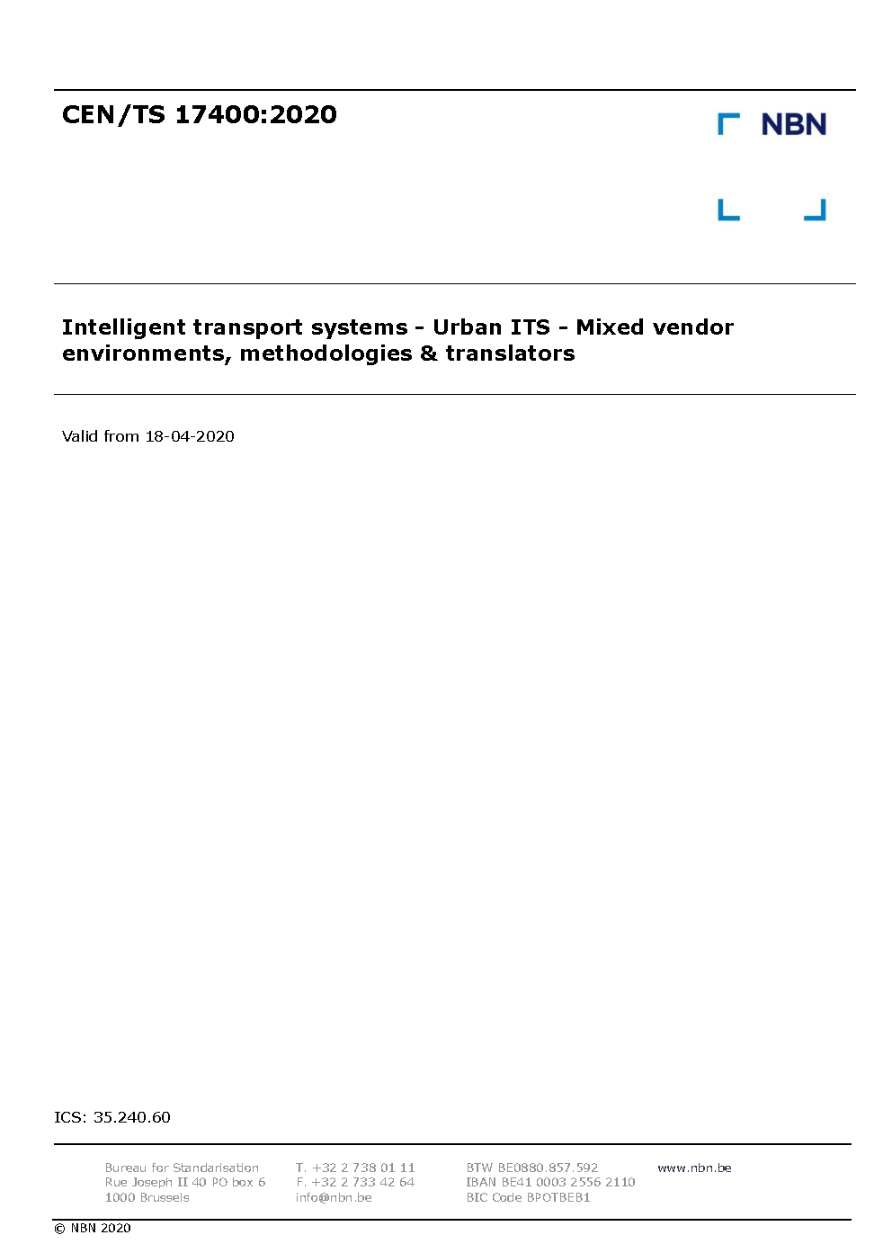 | Publisher | Bureau de Normalisation Belge (NBN) |
