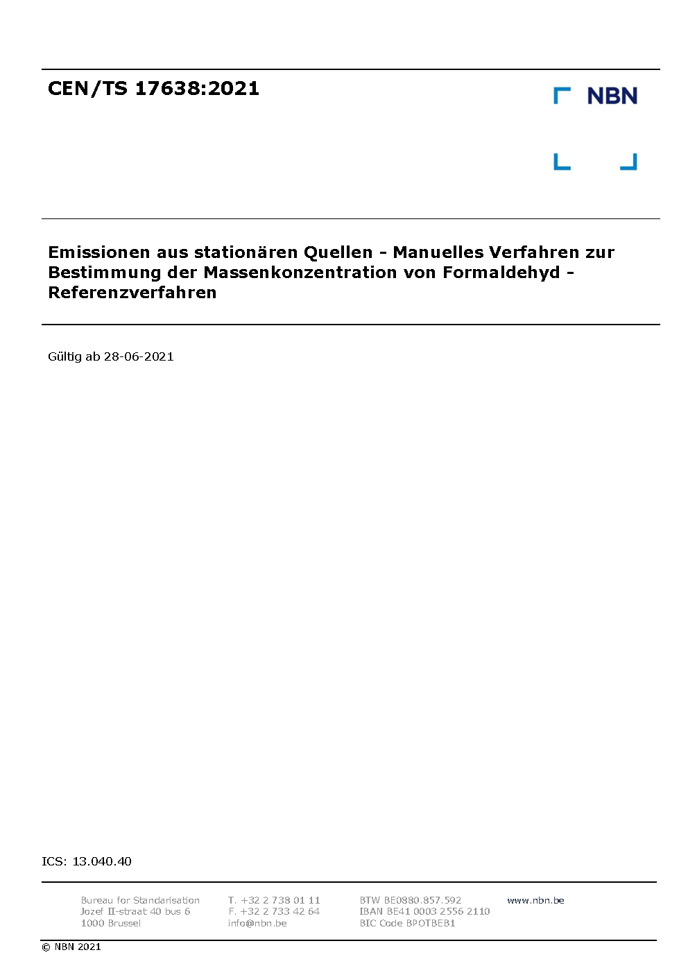 | Publisher | Bureau de Normalisation Belge (NBN) |