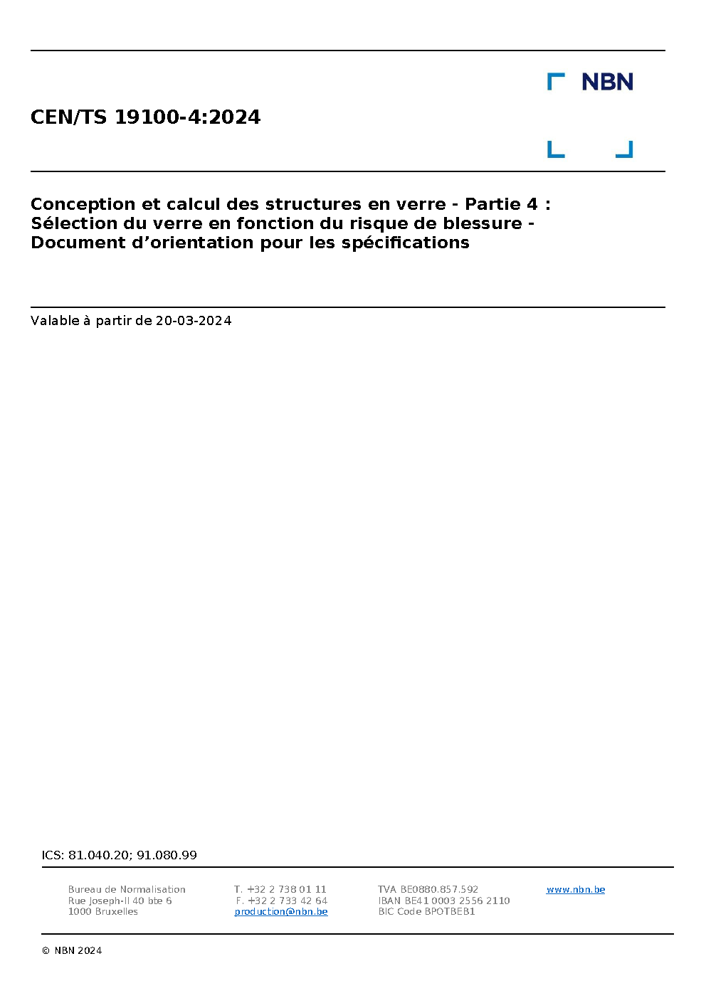(4) The information contained in this document can be used to define minimum glass configuration. It does not exempt from the verification according to CEN/TS 19100-1 and CEN/TS 19100-2 and where appropriate CEN/TS 19100-3.