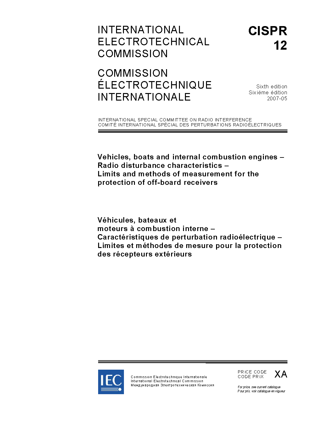 CISPR 12:2025 Vehicles, boats and devices with internal combustion engines or traction batteries – Radio disturbance characteristics – Limits and methods of measurement for the protection of off-board receivers