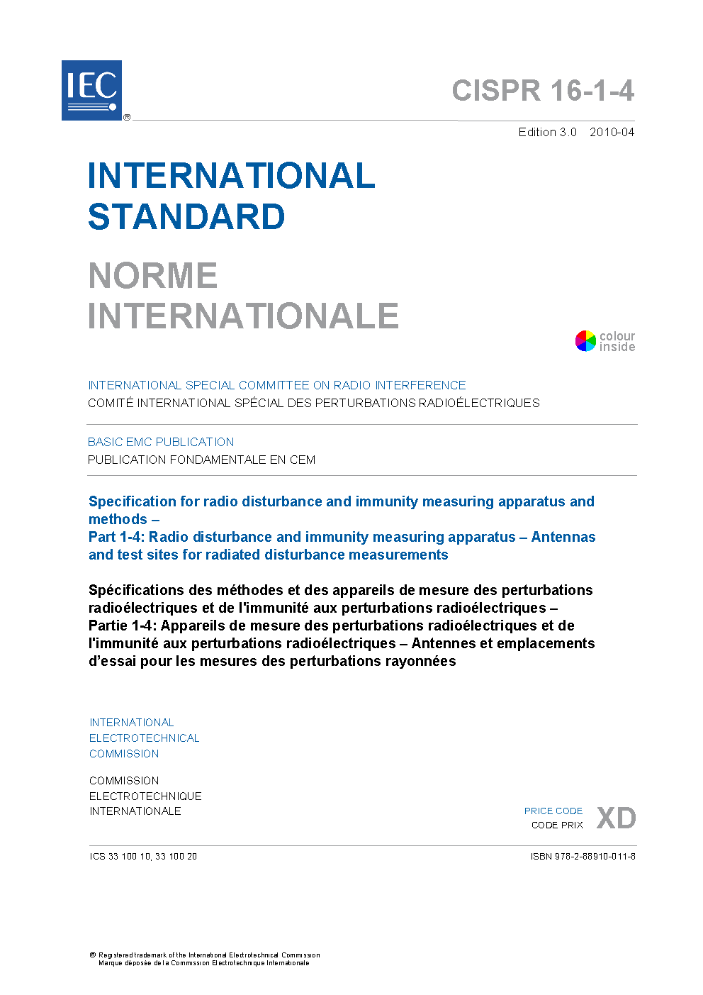 CISPR 16-1-4:2010 Specification for radio disturbance and immunity measuring apparatus and methods - Part 1-4: Radio disturbance and immunity measuring apparatus - Antennas and test sites for radiated disturbance measurements
