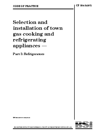 Selection and installation of town gas cooking refrigerating appliances Refrigerators