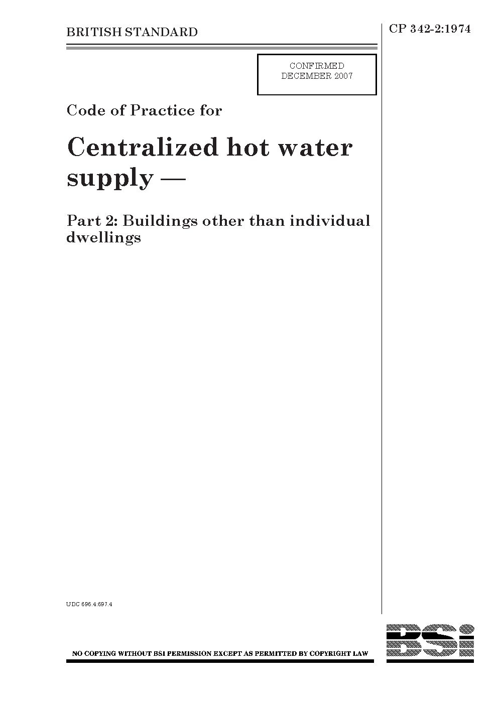 Code of practice for centralized hot water supply Buildings other than individual dwellings
