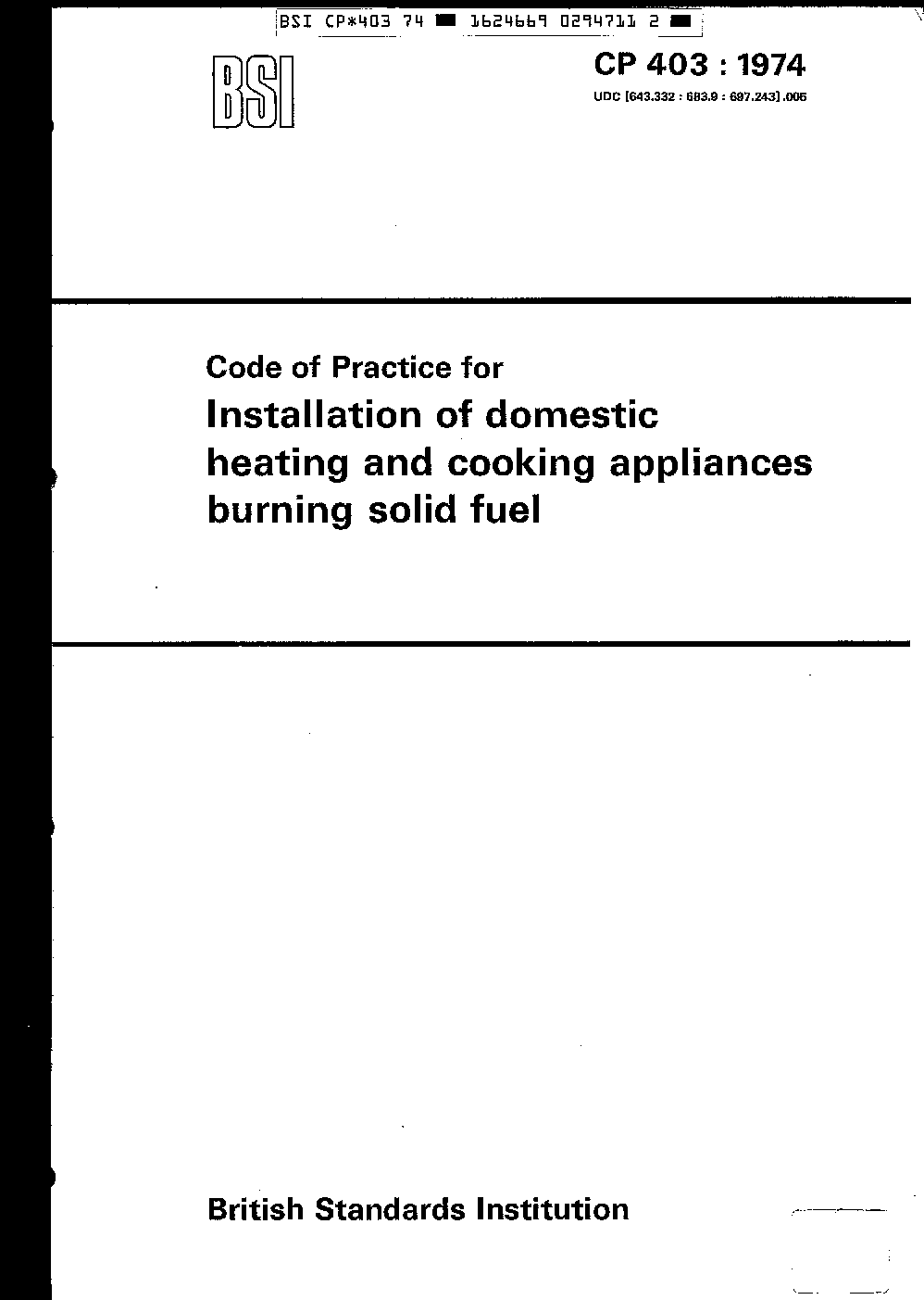 Code of practice for installation of domestic heating and cooking appliances burning solid fuel