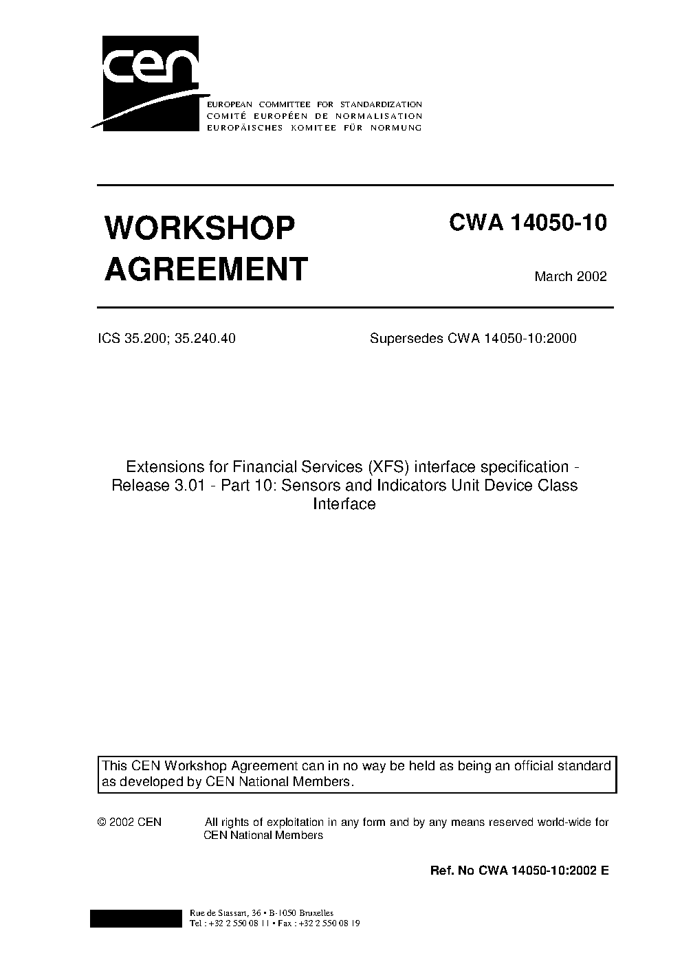 Extensions for Financial Services (XFS) interface specification - Release 3.0 - Part 10: Sensors and Indicators Unit Device Class Interface